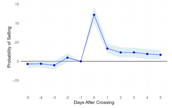 Abstract: We provide the first evidence of forward-looking reference points in investor behavior. Combining administrative data on option traders with a stacked difference-in-differences design, we show that investors’ propensity to sell options spikes precisely when the underlying asset crosses the strike price, which retail investors frequently select to match their target price. The effect is difficult to explain using the standard disposition effect, nominal returns, salience, option Greeks, or complex option trading strategies. Moreover, the effect is present only for options bought out of the money, for which the strike price acts as a natural target, but absent for options bought in the money, for which it cannot. The evidence is most consistent with investors evaluating gains and losses relative to a forward-looking target, in sharp contrast with the backward-looking purchase price widely used in the disposition effect literature. Our findings help reconcile conflicting empirical evidence on investors’ reluctance to realize losses.